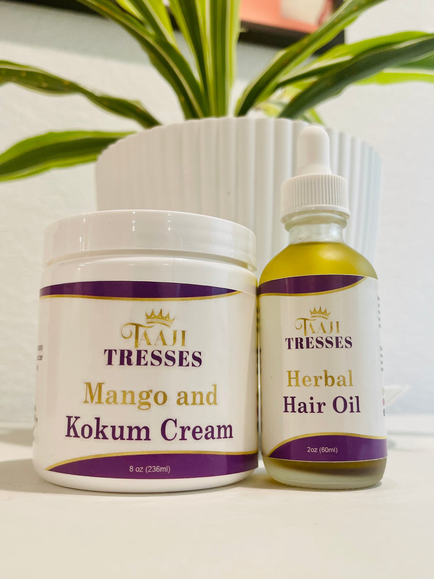 Improve your hairs health and growth with the Herbal Hair Oil and Mango and Kokum Styling Cream